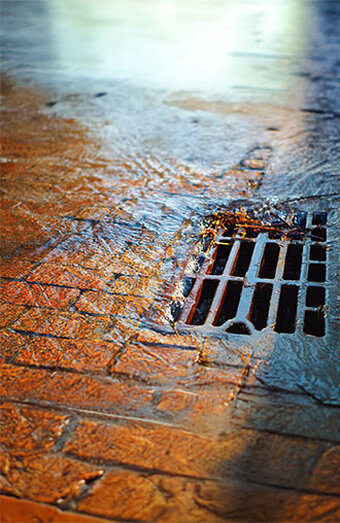 Urgent unblocking of stormwater pits and grated inlets clogged with leaves, sediment or debris during heavy downpours to prevent backflow.